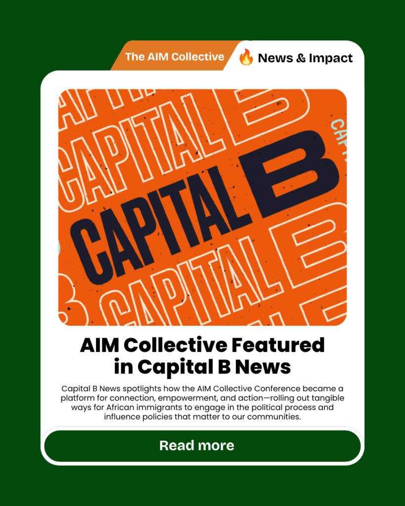 The African Immigrant Collective (AIM Collective) is now a 501(c)(3) nonprofit organization devoted to empowering African immigrants at all stages of their journey—whether you're newly transitioning to life in the U.S. or an established professional seeking to give back. Our mission is to foster success through professional development, community building, and advocacy. We offer tailored programs, networking events, mentorship opportunities, and resources to help our members achieve their goals and thrive. Join us as we celebrate our heritage and build a brighter future together.